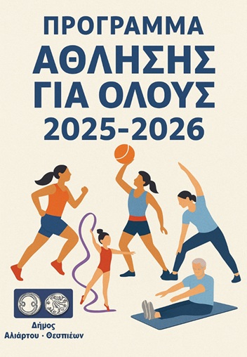 Ο Δήμος Αλιάρτου – Θεσπιέων ανακοινώνει πως ξεκινάνε οι εγγραφές αθλούμενων στα παρακάτω Προγράμματα “Άθλησης για Όλους” 2025 – 2026: